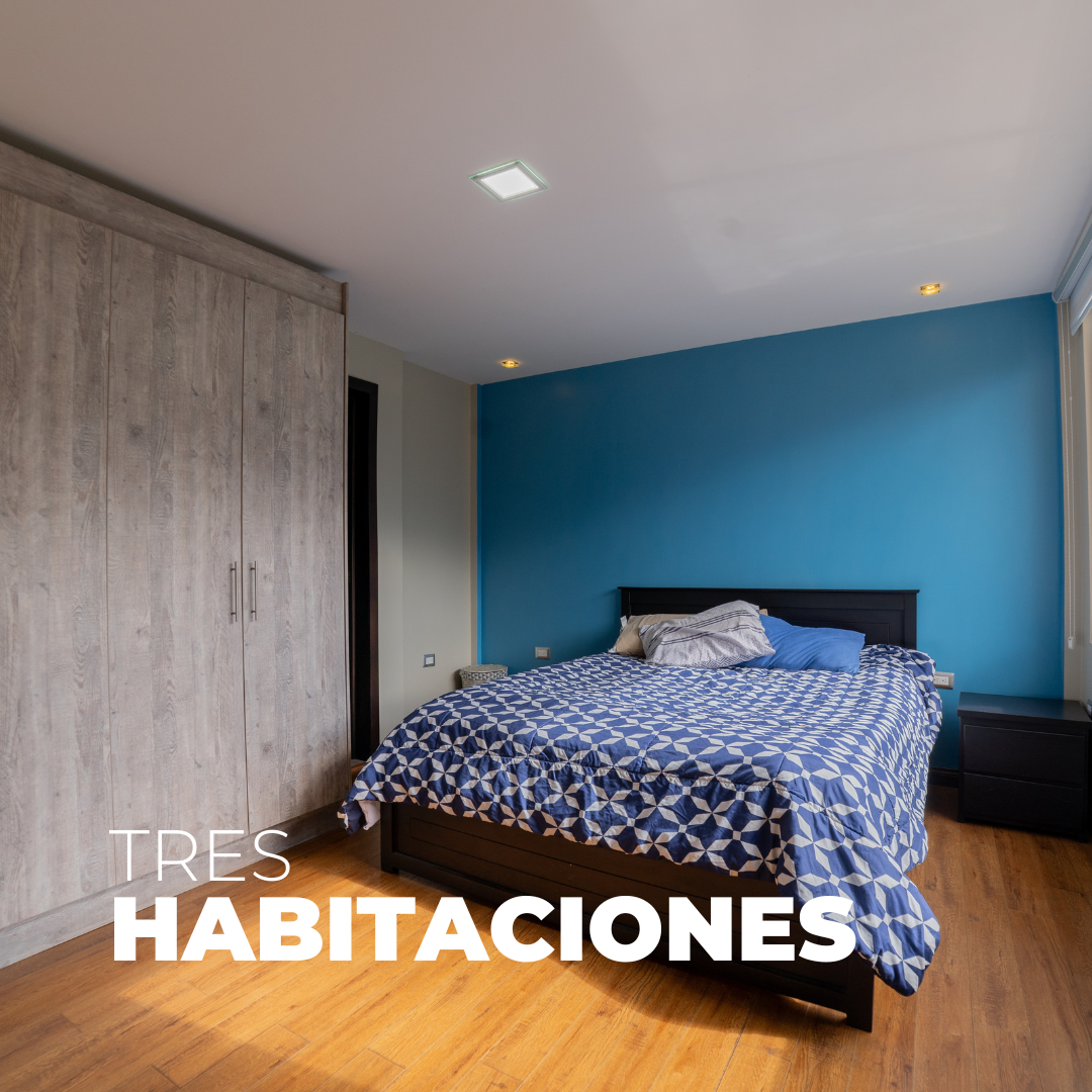 La casa cuenta con 3 dormitorios, cada uno con su baño privado. El dormitorio principal incluye un walking closet de lujo. En total, hay 3.5 baños distribuidos en la propiedad.
